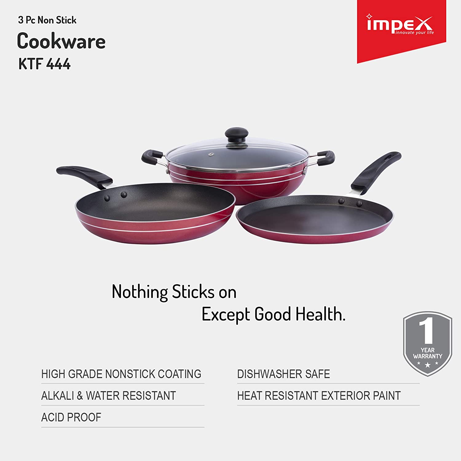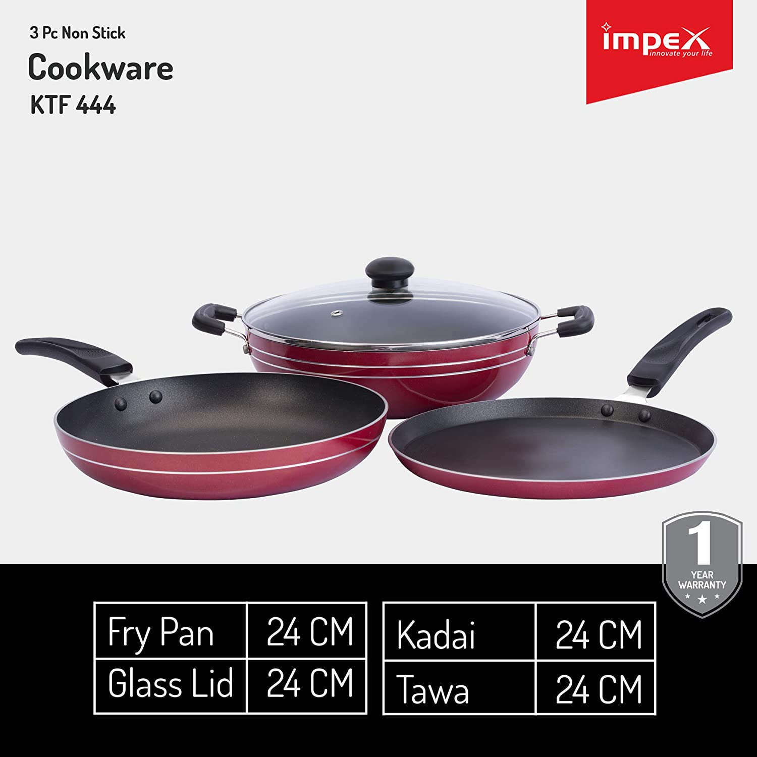 Kitchen Set of 3 Pans. 1x Kadaipan 24 cm. ( Non stick ) 1x Fry Pan 24 cm. ( Non stick ) 1 x Tawapan 24 cm. ( Non stick )