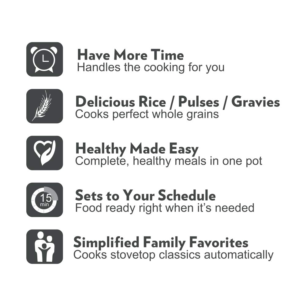 Auto cooking function - comes with 4 preprogrammed settings for rice, gravy, soup and steaming.