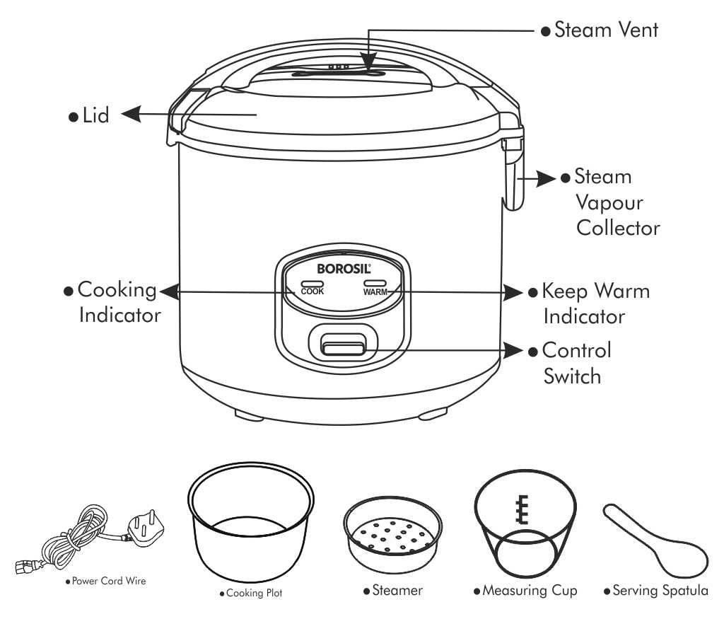 Electric Rice Cooker 1.8 Ltr. (BRC18MPB12). 650 W. 2.48 Kg weight. Large 1.8 L non stick pot allows cooking 4-20 cups of rice - perfect for big families and parties. Cook and Keep Warm function with indicator display. Spillover prevention vent. Automatic Thermal Cut-off. 2 year warranty.
