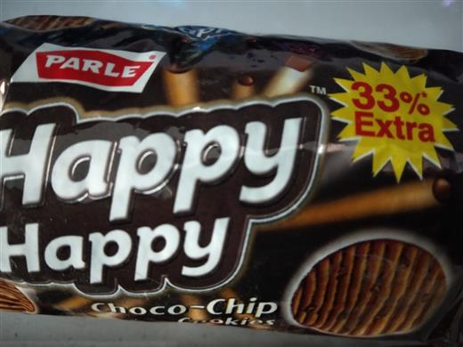 Parle Happy Happy Biscuits Pack. Choco Chip Cookies. 33 % Extra. Pack of 6.