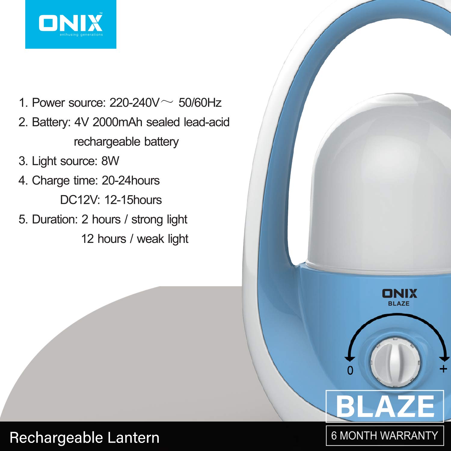 Emergency Light. 4 V 200 mAh battery. 8 W. Solar input : DC 12 V Socket. 6 months warranty.